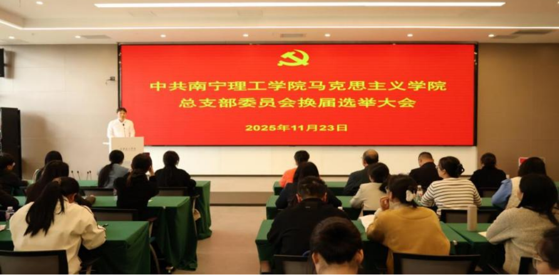 2025年11月23日,中共南宁理工学院马克思主义学院总支部委员会换届选举大会在图书馆618会议室隆重召开。学院院长秦宏毅列席会议,马克思主义学院全体党员参加。大会由刘强同志主持。
